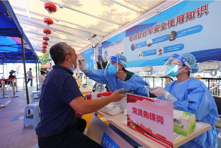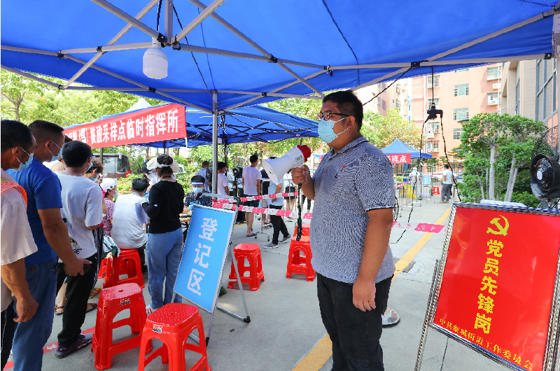 航城街道辖区核酸采样点的党员先锋岗。