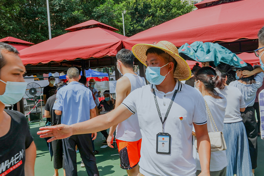当下的宝安,无论是社区卡口、园区岗亭、隔离酒店,随处可见党员志愿者红马甲忙碌的身影,各大接种点、检测点上空,鲜艳夺目的党旗迎风飘动。疫情防控一线的这抹红色,被广大市民亲切地称为“安心红”。因为人们知道,在关键时刻,党员干部是扛大旗的先锋,党组织是挑重担的堡垒,百年来一直如此。