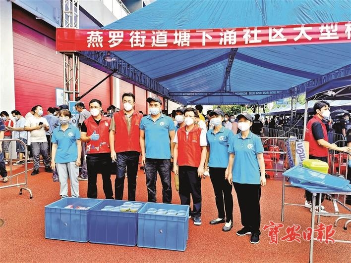 颐年社康是燕罗街道最大的疫苗接种点,人多时医务人员会主动放弃中午休息时间,简单吃几口饭后继续为市民接种;在各个接种点都少不了“红马甲”的身影,燕罗志愿者一边提醒排队市民保持间隔,一边协助大家填写提交行程信息,并不时派发饮用水等;燕罗网格员则是凌晨五点到岗,引导为不耽误上班时间提前排队的市民站好队列,劝导未预约的市民预约后再来排队……