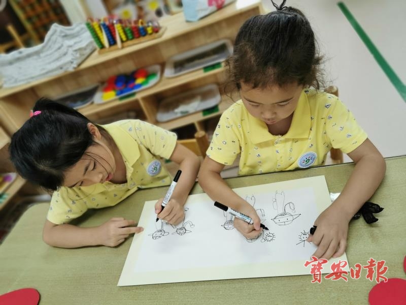 孩子们开始绘画。
