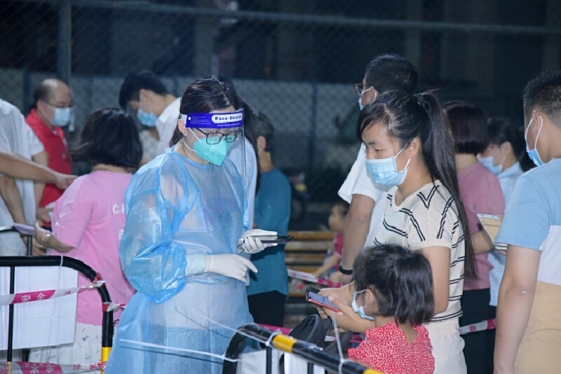 “一组五个、三组十个、五组补二个、健康码无法认证的请持身份证到七组特别通道由工作人员手工输入……”连日来,社区工作者、青年突击队员们就手持扩音器不停的在采样现场引导群众有序排队参与核酸检测。透着嘶哑的喊声、不停滚落的汗水,他们无暇顾及,不时还认真回答着群众的咨询,为他们提供扫码服务。