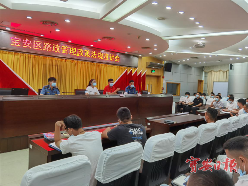 路政宣传月期间,执法支队宝安大队会同市交通运输局宝安管理局组织召开宝安区路政管理政策法规宣讲会。会议重点解读了《深圳市占用挖掘道路管理办法》《深圳市交通运输局路政管理规定》等规范性文件,解析相关路政处罚案件,强调路政许可申报注意要点,全区涉及占用挖掘道路的各工程建设单位及施工单位约110人受邀参加会议。