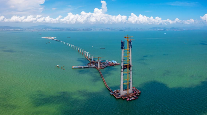 6月17日,在神舟十二号载人飞船成功发射之际,粤港澳大湾区深中通道项目建设传来好消息,中午12时,历经约12个小时连续施工,广东交通集团深中通道伶仃洋大桥东索塔塔柱混凝土浇筑完成,标志世界上最大跨径海中钢箱梁悬索桥首座主塔完成封顶,伶仃洋大桥正式由下部结构施工转换至上部结构施工。