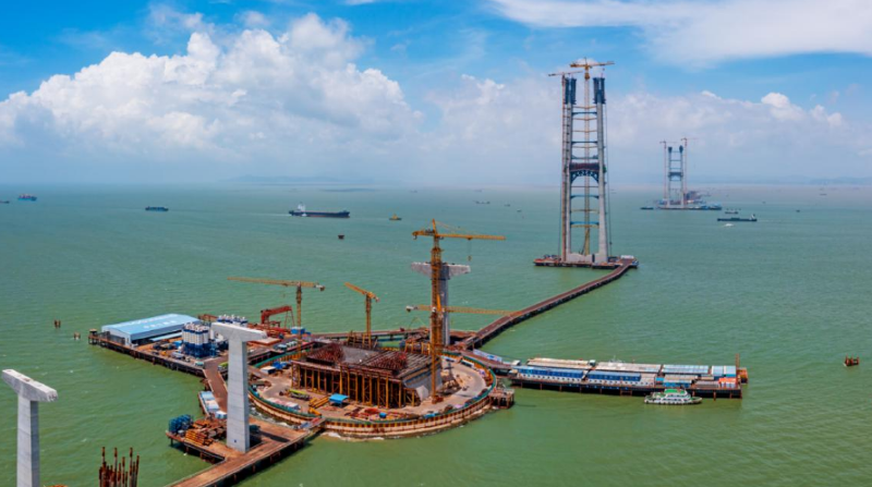 深中通道伶仃洋大桥东索塔及东锚碇建设现场