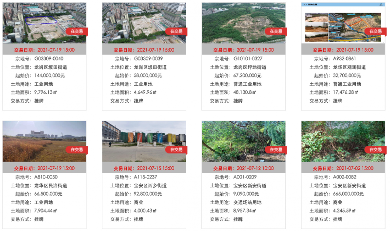 6月18日,受深圳市规划和自然资源局委托,深圳交易集团有限公司(深圳公共资源交易中心)发布公告,拟于7月19日以挂牌方式集中出让5宗工业用地。此外,2021年7月,深圳还将挂牌出让2宗商业用地和1宗交通场站用地。