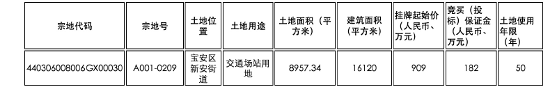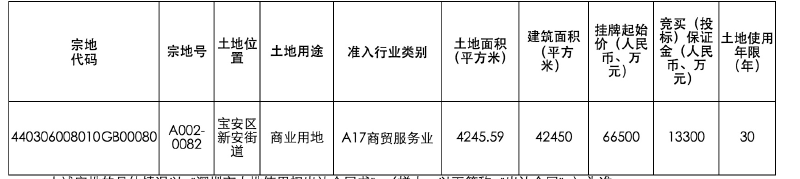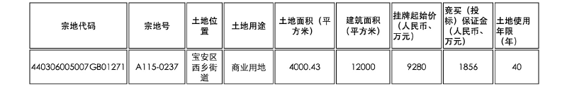 此外,深圳市规划和自然资源局还于日前委托深圳交易集团有限公司(深圳公共资源交易中心),拟于7月以挂牌方式出让2宗商业用地和1宗交通场站用地,分别位于宝安区新安街道和西乡街道。