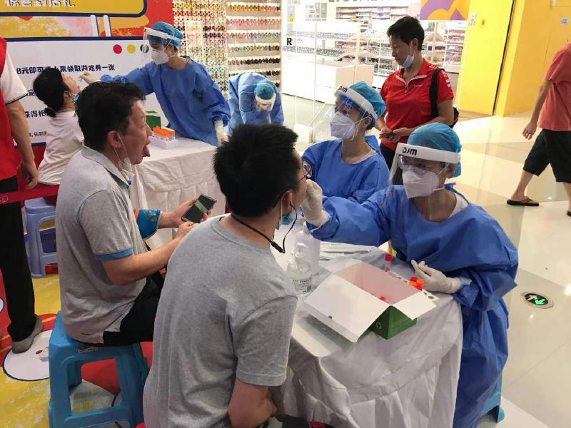 医护人员为居民进行核酸采样。