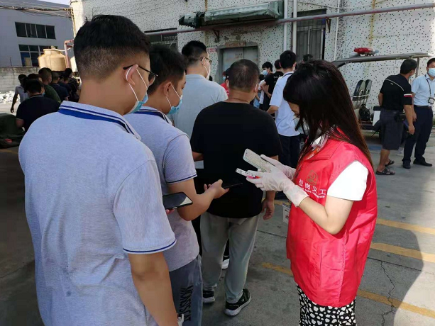 企业防疫志愿者在核酸采样现场