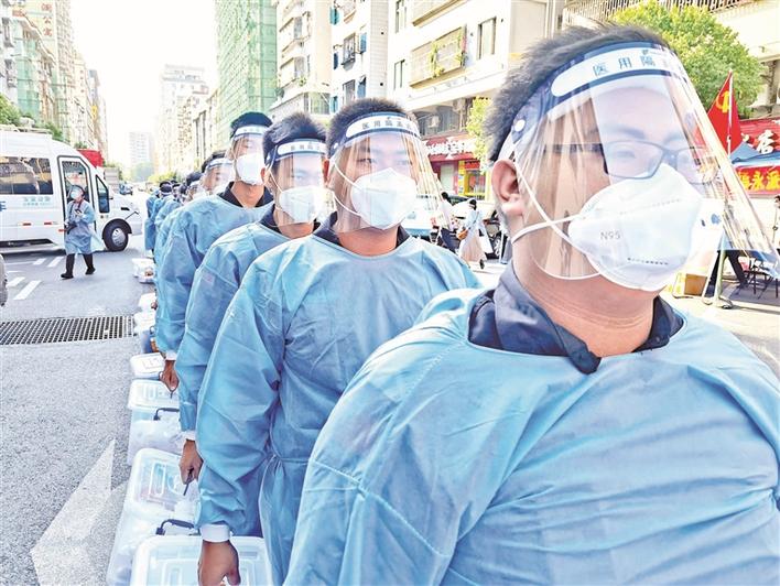 医护人员在封闭区进行核酸采样。