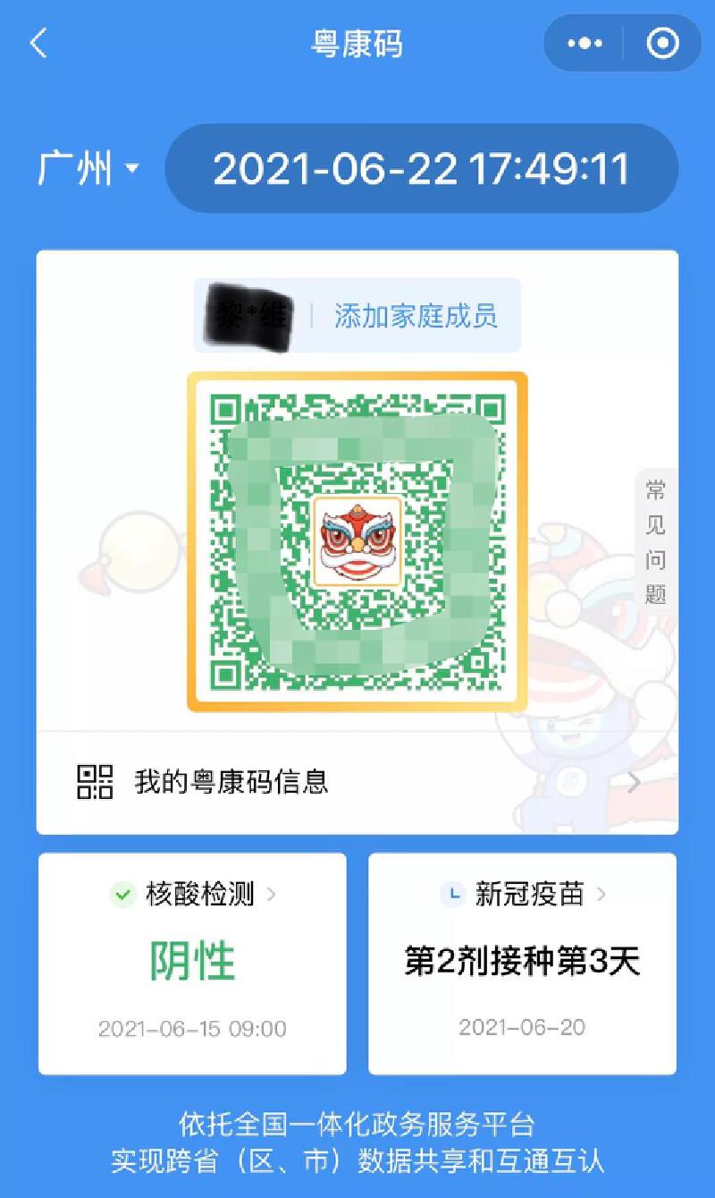 之前穗康码上线,用市花红棉花作图案,这次粤康码用了醒狮,那醒狮就是广东省的代表。