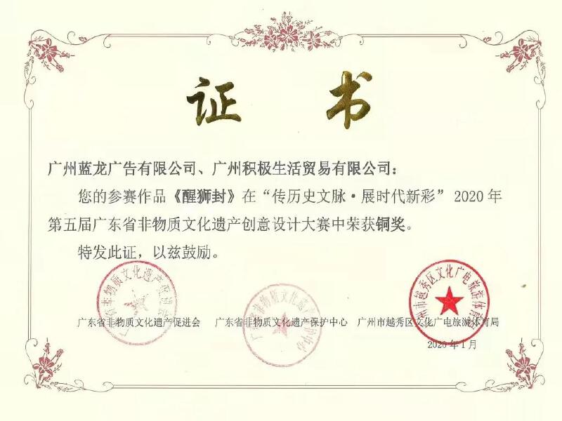 最特别之处,每个醒狮封都可以通过手工DIY折成狮子头挂饰,创意十足,因此在2020年就赢得了广东省非物质文化遗产创意设计大赛的铜奖。