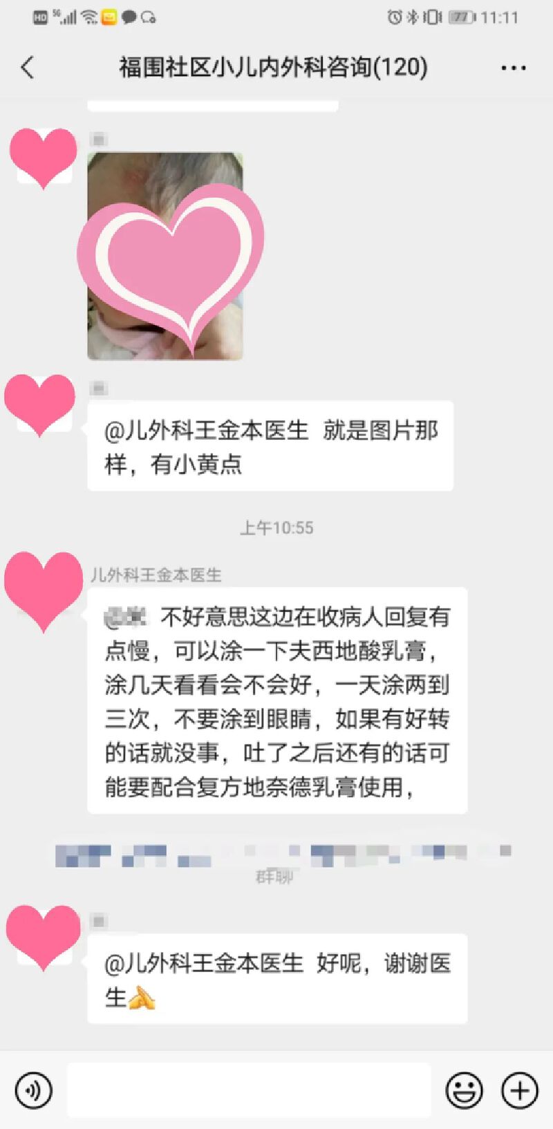 “王医生,我小孩现在6个月,脸上长了小黄点,能帮忙看看吗?”