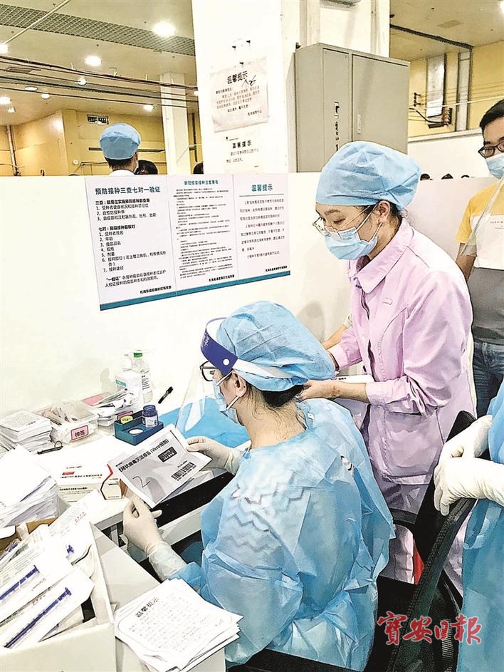 日前,松岗街道启用了松岗体育中心作为新冠疫苗接种点。松岗人民医院泌尿外科护士邹梦接到医院指令后,要求前往该接种点驻守。