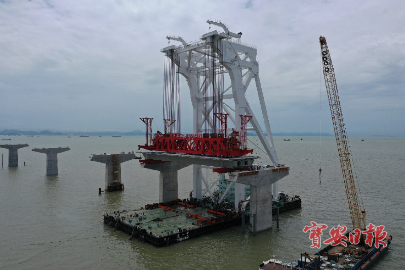 “我们采用国内首创单体船型结构、全电力推进的海上架梁施工专用起重船‘天一号’进行架梁施工,相比普通的浮吊架设,可独立完成取梁、运梁和架梁工作,有效减少工序交接时间,提高架设效率和安全。”中铁大桥局深中通道项目S07合同段副总工程师陈剑波介绍。