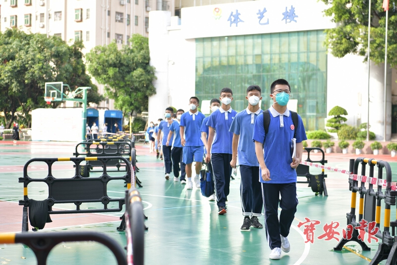 为最大限度减少封闭区考生、封控区考生与考务工作人员的交叉聚集,在区教育局、卫健局等部门指导,以及福永街道的大力支持下,考试期间,下十围小学中考隔离考点实行3个通道,分类进出。