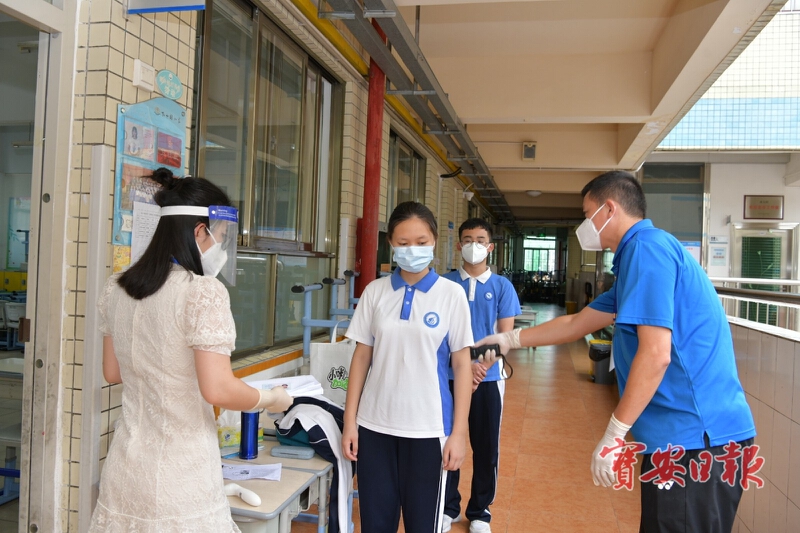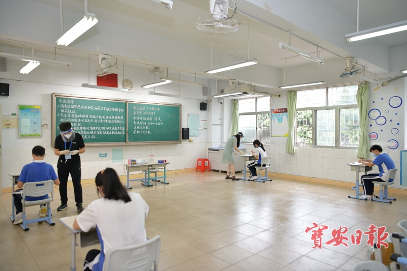 早上6时,考务人员便陆续起床洗漱,30分钟后在酒店用早餐,7时整便悉数到岗。公安、交警、卫健系统医护人员、福围专班工作人员,以及志愿者们,也陆续抵达考点,立即展开中考保障工作。历经夜雨的洗礼,宝安早晨的气温下降了不少,26℃,大家个个神清气爽。