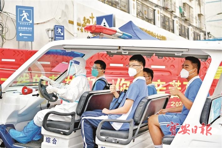 与此同时,封控区早已设好3个固定电瓶车接送考生点,每个点安排了两辆车,负责点对点接送考生到该考点,并在福围路安排流动电瓶车,负责运送考生。据了解,在该考点参考的封控区考生,共74名。