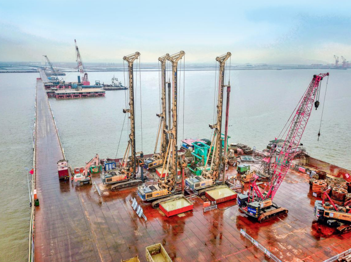 “为保证大直径钻孔桩顺利施工,保时保质推进主墩建设,黄茅海项目创新施组、优化工艺,引进26台顶尖钻孔设备550及580旋挖钻机,成孔速度快、成孔质量高。通过多措并举,持续优化,推进钻孔桩标准化作业,实现了工业化高质量建造,工程安全、质量、进度可控。”黄茅海跨海通道项目副主任朱超表示。