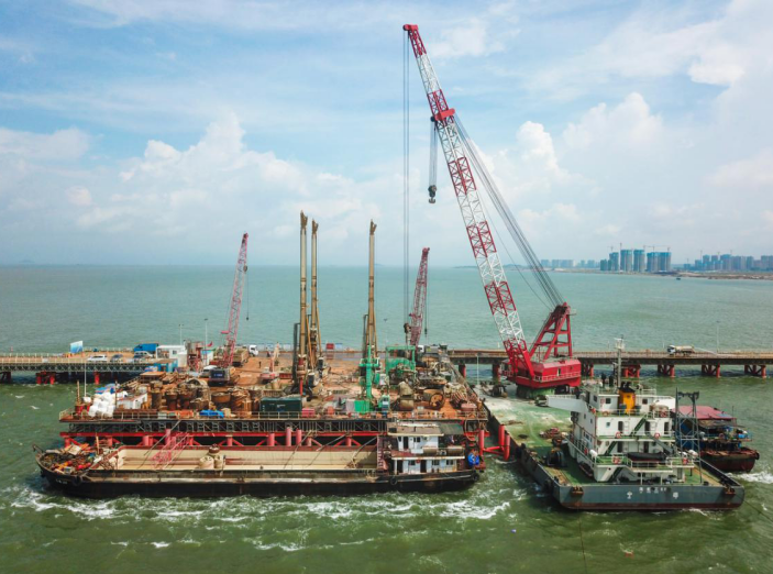 黄茅海跨海通道高栏港大桥施工现场
