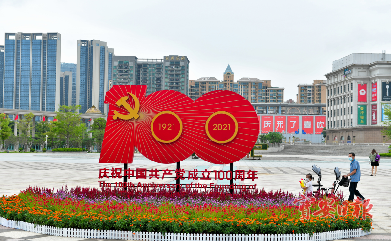 其中,市民广场已装扮一新,迎接“七一”党的生日。据悉,市民广场中心区域、南门区域各布置了一座建党100周年LOGO装置,装置结合建党100周年庆典元素,制作大号灯箱及花卉布置,保障夜间观赏性及庆典氛围。市民广场北门则设置1座建党100周年LOGO装置。此外,在大舞台上悬挂9面国旗,罗马柱走廊两侧各布置50面国旗,寓意共同庆贺建党100周年。市民广场完成装扮后,呈现出同庆百年华诞的浓厚氛围,吸引了众多市民驻足观赏,争相拍照留念。