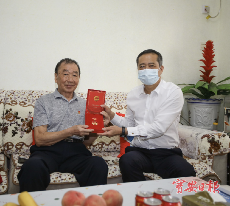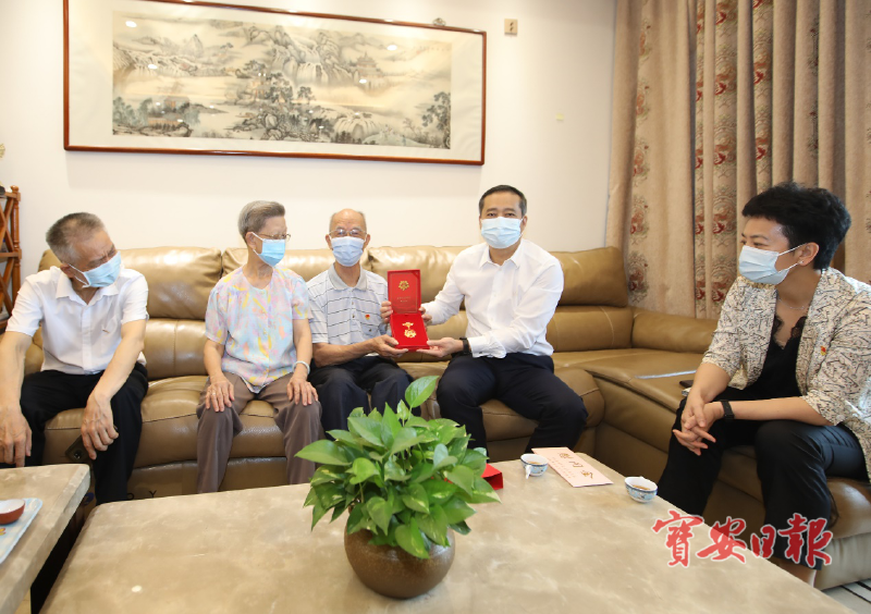 叶国仕有52年党龄,曾任固戍小学负责人、安乐小学校长,退休后依然心挂国家发展,每天坚持登录学习强国APP浏览发展动态,学习并为他人介绍国家政策和发展新成就,时常活跃在小区党支部各项活动中。姚任来到叶国仕家中,与他们夫妇俩握手长谈,了解他们的生活近况。他向老同志颁发了“光荣在党50年”纪念章并表示,宝安的发展是一代代党员干部团结带领大家一起干出来的,广大老党员作出了突出贡献,希望大家注意身体,用丰富经验继续为年轻一辈的工作提供指导和参考意见,继续关心支持宝安发展。