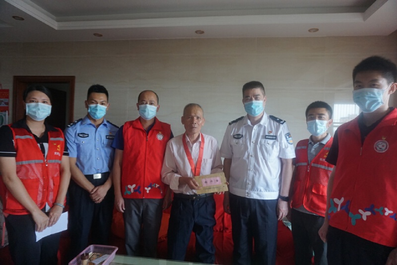 6月30日,深圳市公安局禁毒支队负责人率队到松岗街道江边社区走访、慰问4名老党员和党务工作者。