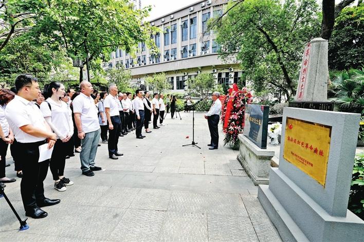 石岩街道党员领导干部来到乌石岩革命烈士墓前,聆听老战士讲述革命故事,缅怀曾经在石岩挥洒热血的革命先烈。