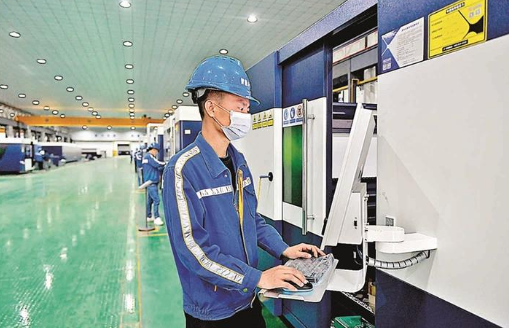 大族激光车间内,调试工程师在对高功率切割机进行性能测试、工艺参数的校验以及机器出厂前的试切割加工。这是对质量的最后把关。