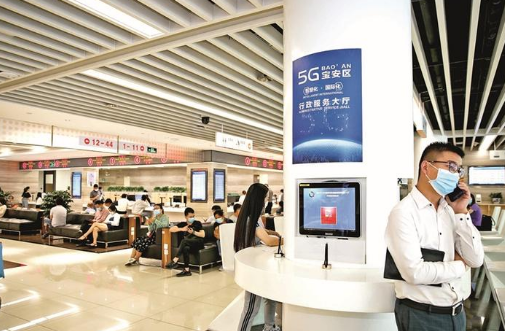 宝安区政务服务中心,市民办理业务可以享受到5G业务咨询办理服务平台的便利。