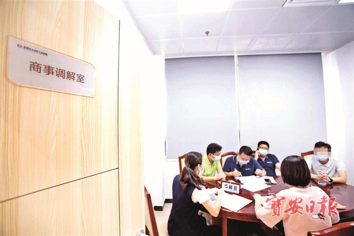 ▲多元调处中心商事调解室正在调解一起买卖合同纠纷案。
