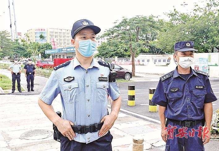 早上不到7时,壆岗派出所步涌社区警长吴国成和辅警、聘员们早早来到深圳市宝安区才华学校大门口,装备齐整的他们正等待学生走进校园。疫情期间,除了守护学生安全外,他们又多了一项任务:叮嘱家长、学生戴好口罩,做好疫情防护。作为社区民警,吴国成更多时间是在巡逻、走访,虽然日复一日的社区工作略显繁杂、枯燥,但作为一名共产党员,他一直事无巨细地奋战在社区岗位上。