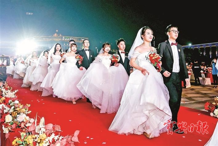 ▲区总工会牵头举办宝安首届职工集体婚礼。