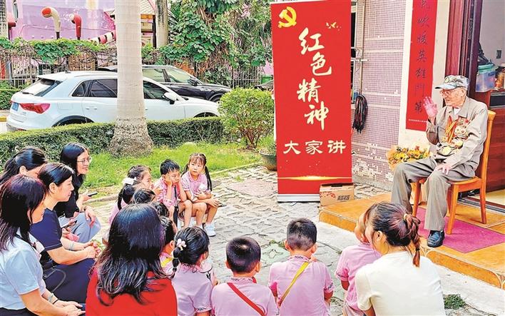 立功退役军人讲红色革命故事。