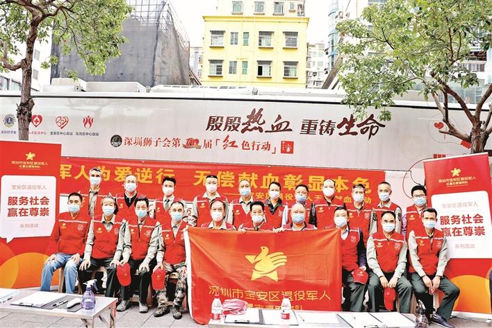退役军人红星志愿服务队参加无偿献血活动。