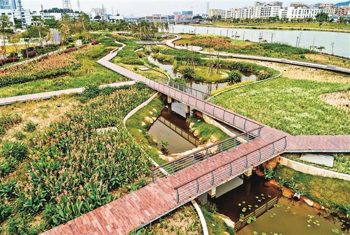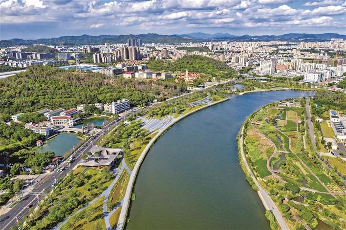 如今的茅洲河天蓝水清岸绿。