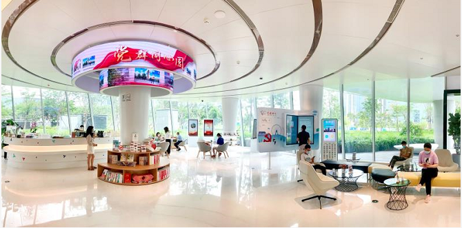 深圳首个建在城市新地标上的党群服务中心——欢乐港湾党群服务中心启用,作为新时代党建新模式的载体,将为游客、入驻商户、各级党组织和党员群众提供党群服务、党史学习、党建宣传、组织生活等全方位服务,为宝安、深圳增添一张党建靓丽名片。