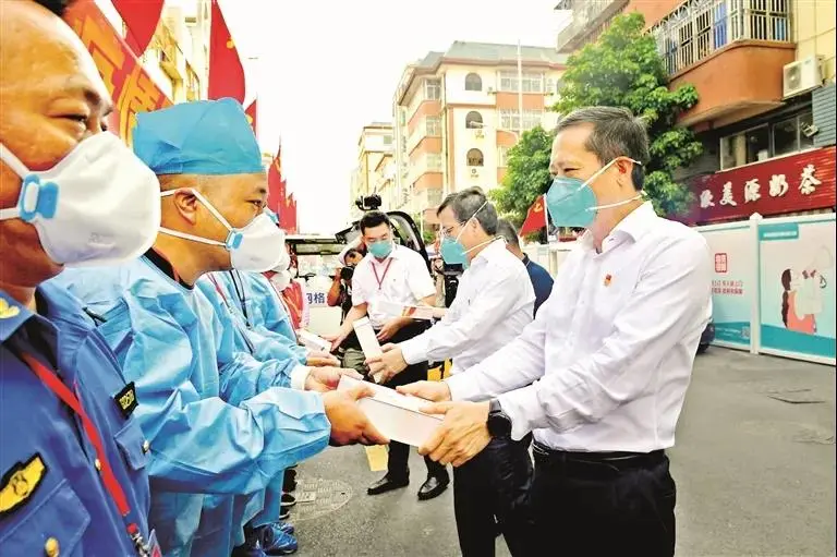 7月1日下午,区委书记姚任,区委副书记、区长王立德专程前往福永街道福围社区封闭区、封控区,慰问战疫一线工作人员并送上“初心礼盒”。姚任表示,目前防疫取得了阶段性成效,力证宝安干部关键时刻顶得上、危急时刻靠得住。胜利就在前方,战疫仍需努力。希望大家从党的光辉历史汲取战疫力量,继续牢记使命、坚守岗位,不获全胜,决不收兵,坚决维护好人民群众生命健康安全。6月26日至28日14时,宝安开展了新一轮全域免费核酸检测工作,采样逾519.5万份。(详见7月2日03版)