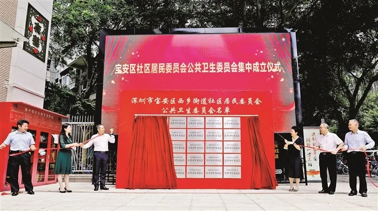6月30日,宝安区社区居民委员会公共卫生委员会集中成立仪式在西乡街道福中福社区举行。全区140个社区居民委员会实现公共卫生委员会设立全覆盖,864名公共卫生委员会成员上岗履职,标志着宝安疫情防控和“健康社区”建设工作迈入新的阶段。按照制度设计,新设立的公共卫生委员会是社区居委会下设的委员会,接受上级党委政府和卫生健康、民政部门工作指导,在社区党组织、居民委员会领导下开展工作,成为健康宝安推进委员会开展工作的重要抓手。(详见7月1日04版)