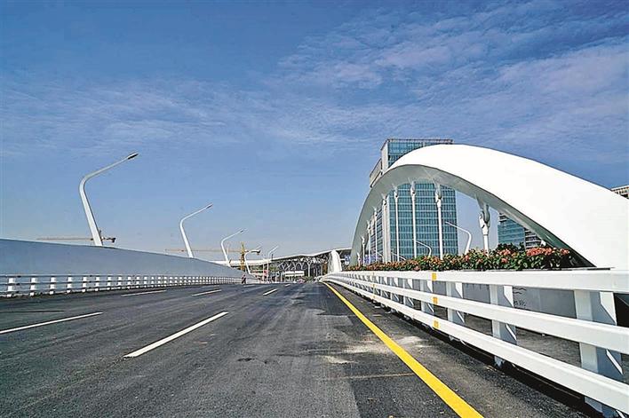 位于深圳国际会展中心东南部凤塘大道西延段,有一座造型独特的钢结构跨截流河大桥,在工程上它被称作7#景观桥。虽然该桥梁不像展览大道3#钢结构景观大桥那样高大壮观,可它却是深圳国际会展中心通往S3沿江和深圳外环高速公路重要的入口处路段,每天过往的各种车辆众多。