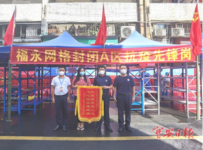 “网格服务暖人心,同心战疫显担当。”7月4日,福永网格封闭A区抗疫先锋岗迎来一面鲜红的锦旗,这是福围社区下沙片区楼栋长洪女士为感谢福永网格员而专门制作送来的。这也是福围疫情防控工作开展以来,福永网格中心收到的第3面锦旗。