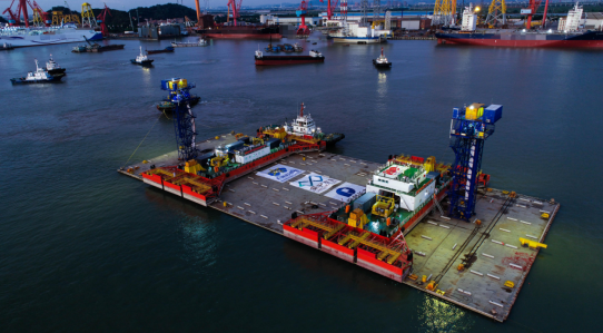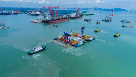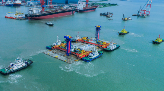 演练作业于7月5日凌晨5:00在龙穴港池内拖轮开始接拖起计,至18:30管节绞移至港池寄放区进行锁定,总耗时约13.5小时。