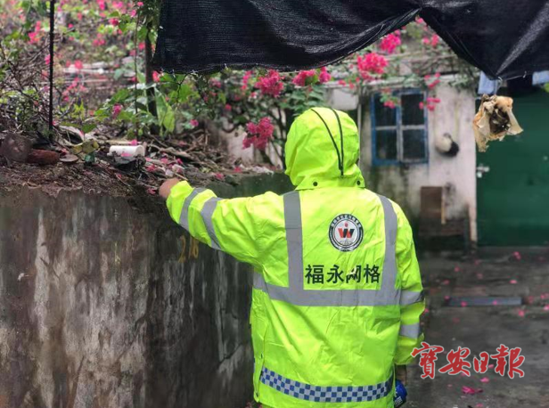 期间,福永网格员深入辖区,针对老旧屋村、危房危墙、危险边坡、低洼易涝区、高空设施等易受暴风雨影响的隐患点进行地毯式巡查,现场清理窗台、天台杂物,发现广告设施掉落、路面积水等安全隐患第一时间上报相关部门并妥善处理,及时维护群众生命财产安全。此外,网格员还通过“线上+线下”方式加强防汛、防疫知识安全宣传,提醒居民做好汛期安全防范,注意用火用电安全;同时,叮嘱承租人持续做好个人防护措施,养成戴口罩、勤洗手、多通风、讲卫生等良好习惯,共同筑牢防汛、防疫安全防线。