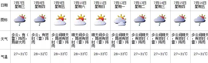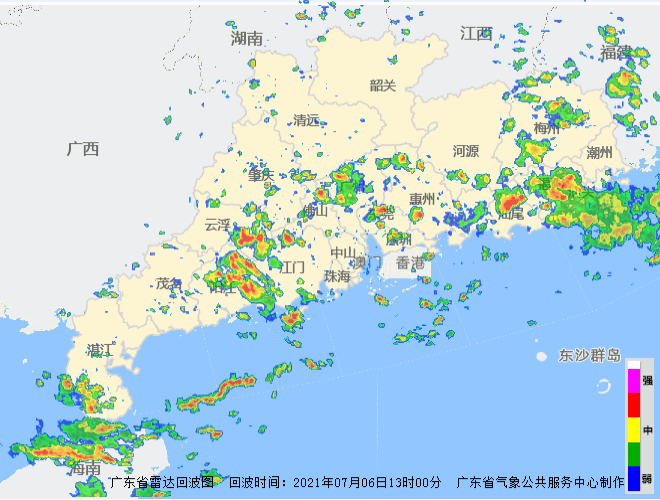7日,粤西有大雨局部暴雨,珠三角和粤东市县有中到大雨局部暴雨,其余市县多云有(雷)阵雨。