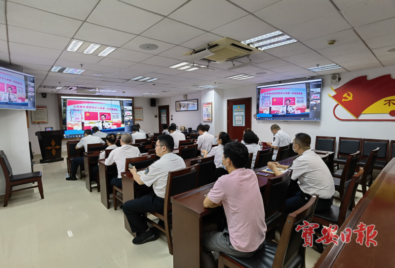 林炳杰在党课中指出,7月5日晚,深圳疫情防控新闻发布会传来好消息,宝安一个中风险社区即日起调整为低风险区域,自此,深圳全市均为低风险地区;7月6日开始,宝安区餐饮业、娱乐场所和培训服务等行业解除了特别管控措施,恢复了正常的经营活动。正是卫生监督员、医生、社区干部、公安民警、保洁、安保、消杀、服务员等全体抗疫人员的辛勤付出,合力筑起了抗击新冠病毒的防疫长城。
