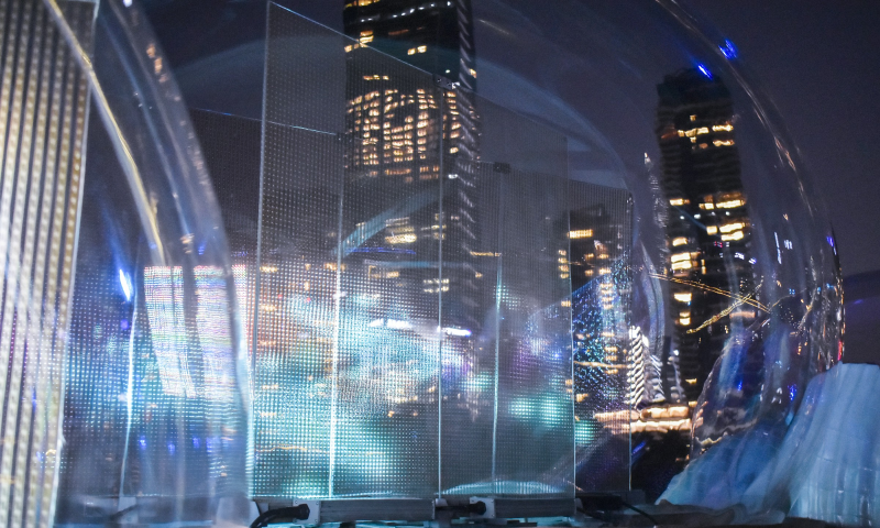 据介绍,铭濠科技与杜健翔团队精诚合作,以艺术拥抱光显技术。在《无界·如鱼得水》作品中,运用了铭濠科技数项新技术与新产品:智慧照明云服务、文旅灯光秀系统及新一代视频玻璃。